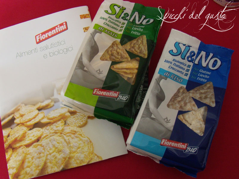 E per uno snack croccante SI&NO sono delle gallettine triangolari di mais e di riso realizzate come tutti i prodotti Fiorentini alimenti con cereali italiani biologici, leggeri e sfiziosi sono la merenda ideale per non rinunciare ad un momento di pausa in compagnia di un croccante break.Sono prodotti senza glutine e non sono fritti quindi sono ideali per tutta la famiglia